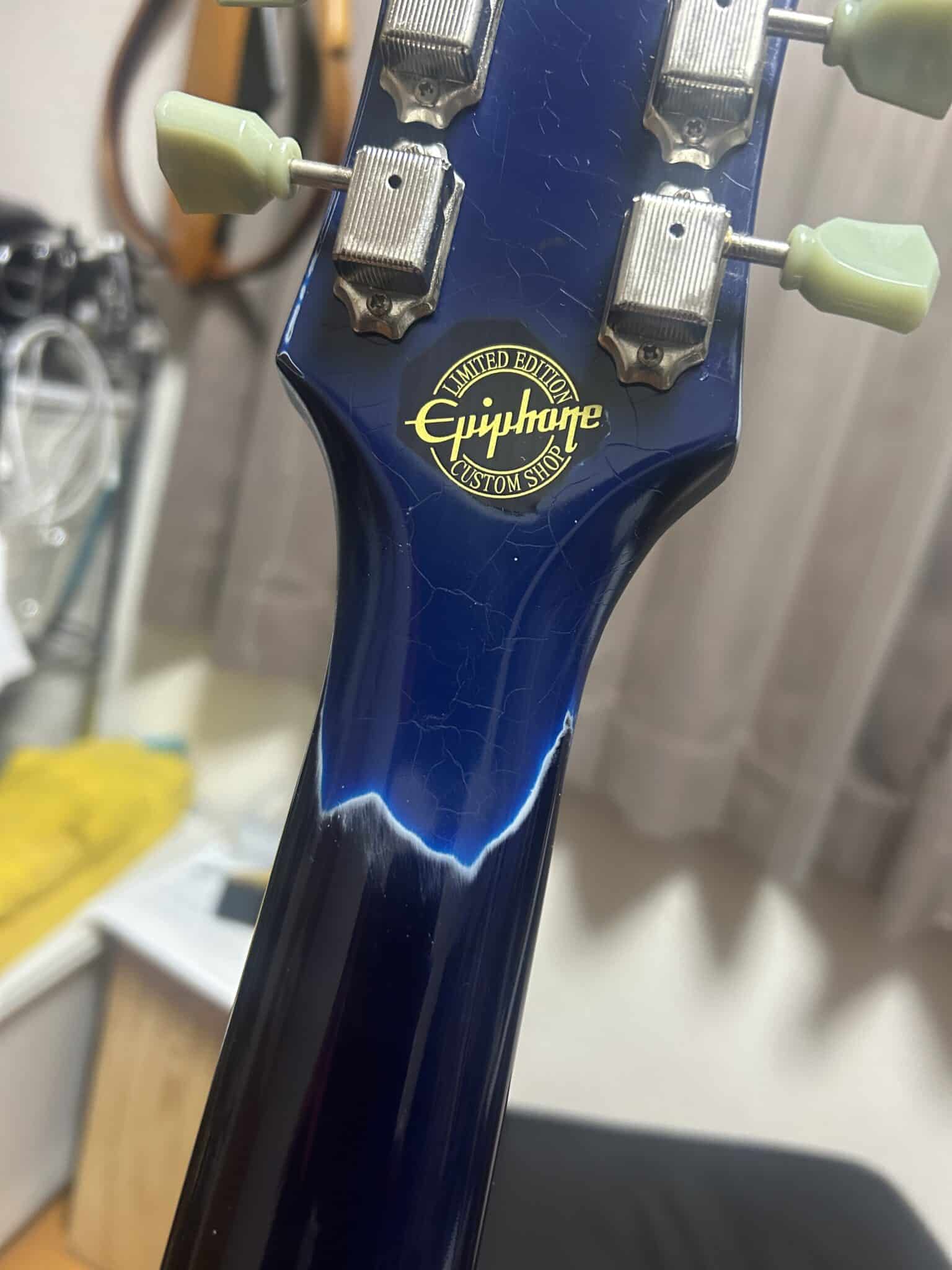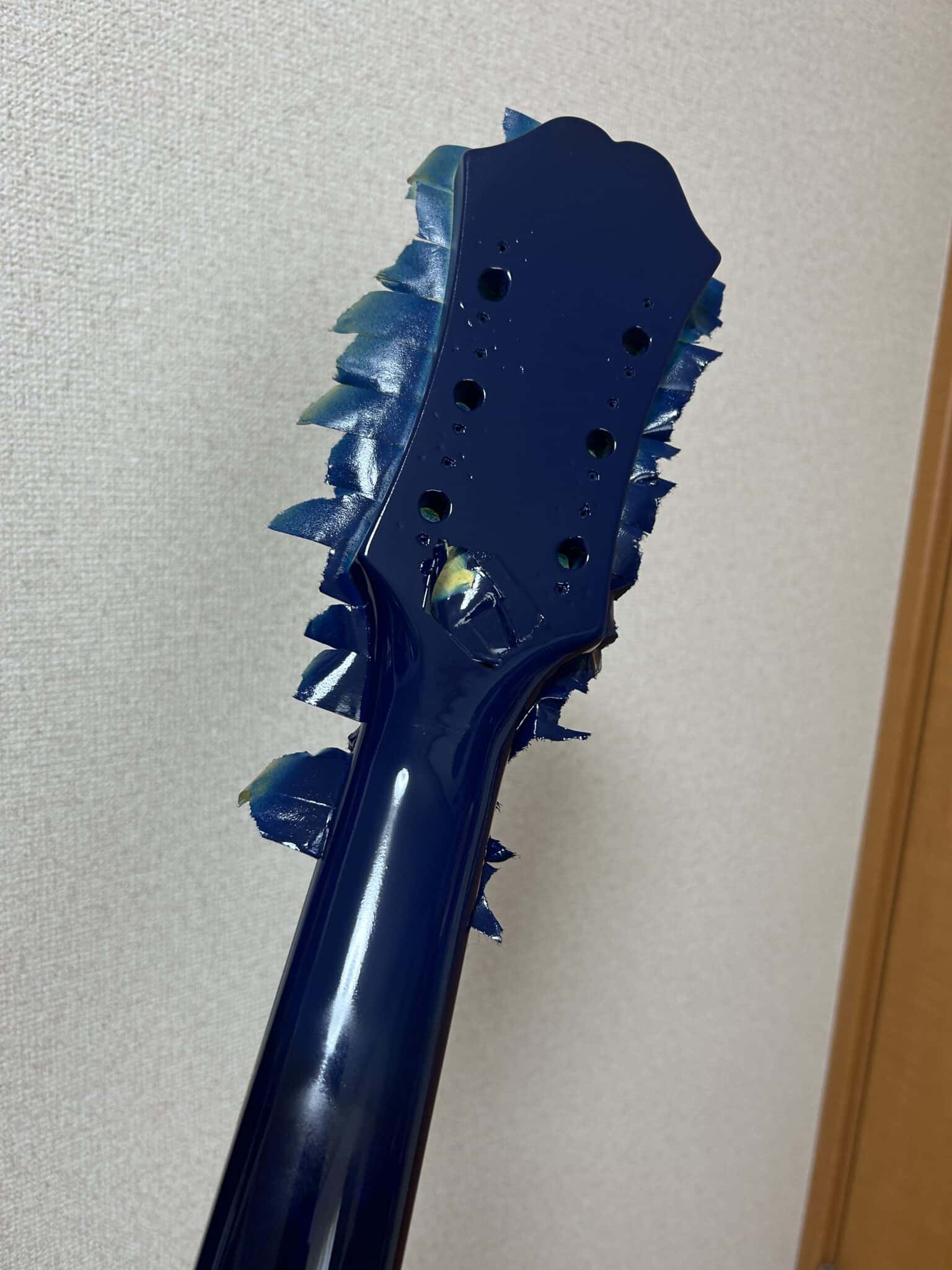 そう。ラッカー塗装でなるヤツねって思ってたらそうだ、このギターウレタン塗装なのにラッカーで塗ってましたって事に全ての作業が終わってから気づきましたぜ😆