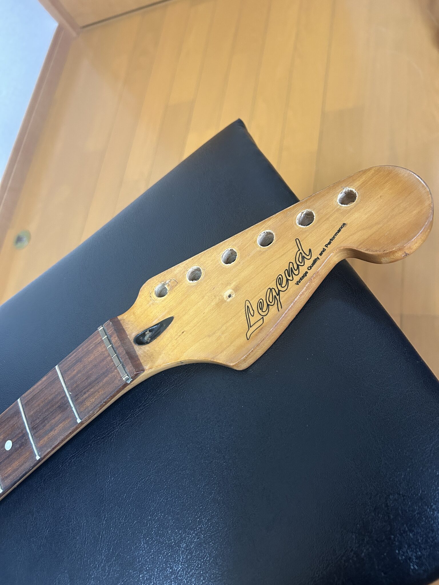 初期の頃のARIA製で『Legend』ってブランドでFender、Gibson系のコピー作り始めたあたりかな?後にGibson系のコピーは『BLITZ』って言うのに変わって、この辺りのは現在でもコスパ高いので人気があって初心者向けたされているが、かなり造りがいい。以前にもレスポールJrタイプのを使っていた事があったがとても好感触だった。このネックが素晴らしく良くて、10年ぐらいこのネックには世話になった。