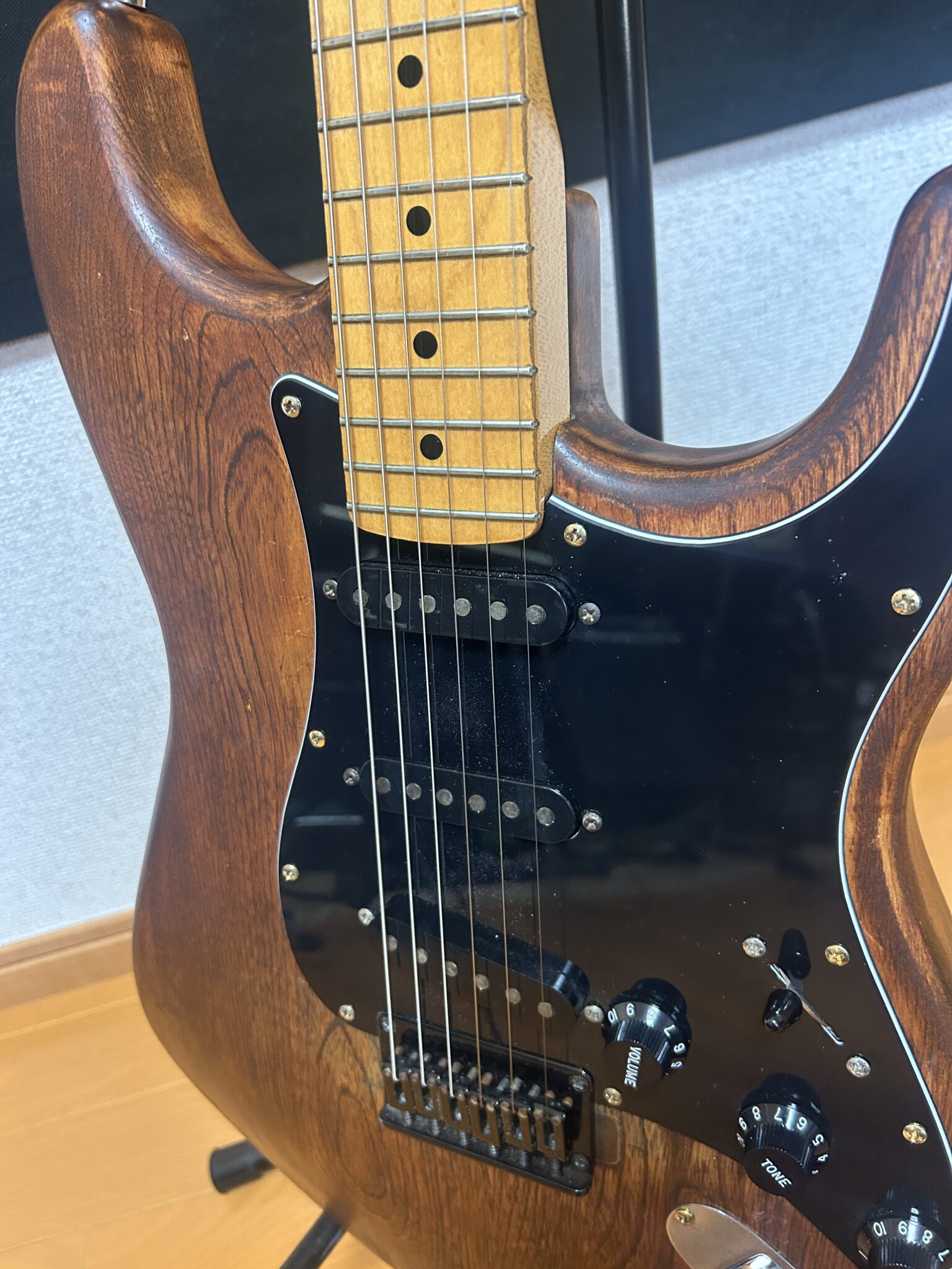 私の所有ギターの中でもかなり古い物になります。しかし、私のところにやって来た時は塗装が剥がされ、ネックぐらいしか付いていない状態で、ギタリストの友人から譲り受けました。彼の話によると(ネックは知らんが、ボディは結構良い物らしいぞ。材質は『セン』ビルローレンスの物らしいぜ。良い感じに仕上がるんじゃない?)ってね。けっこう良い物いただいたんね。