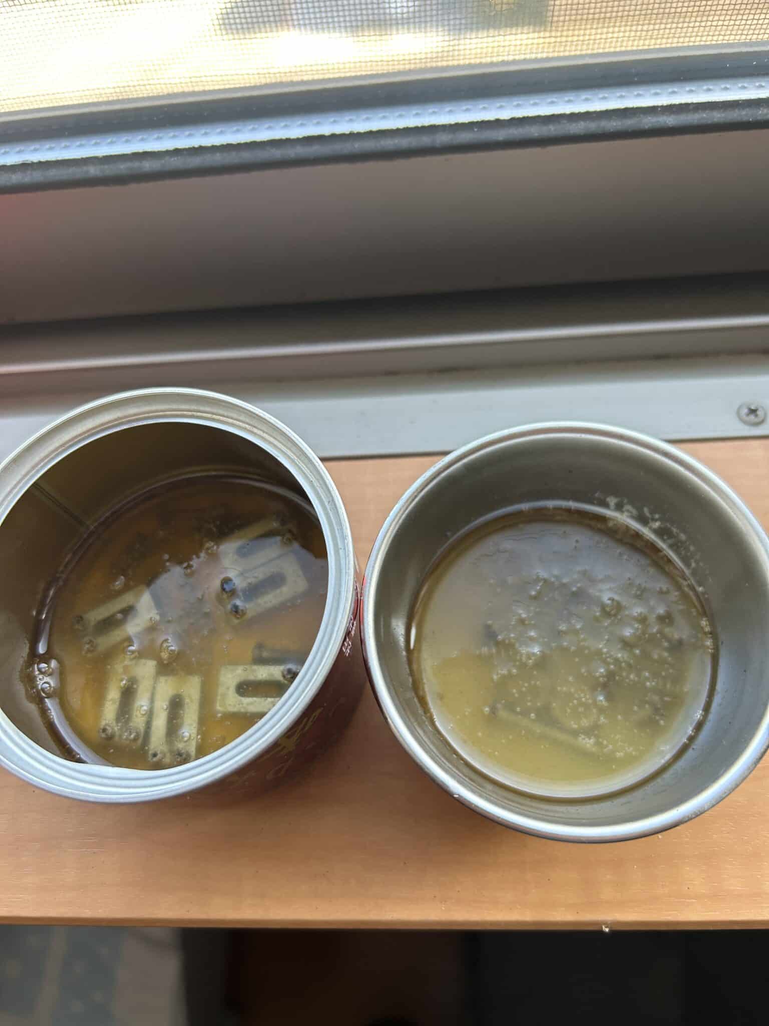 二枚目のは2日目だがあまり変わっているようには見えない。漂白剤ドブ漬けで紫外線にさらして一週間ほどで元の真っ白になるらしい。
